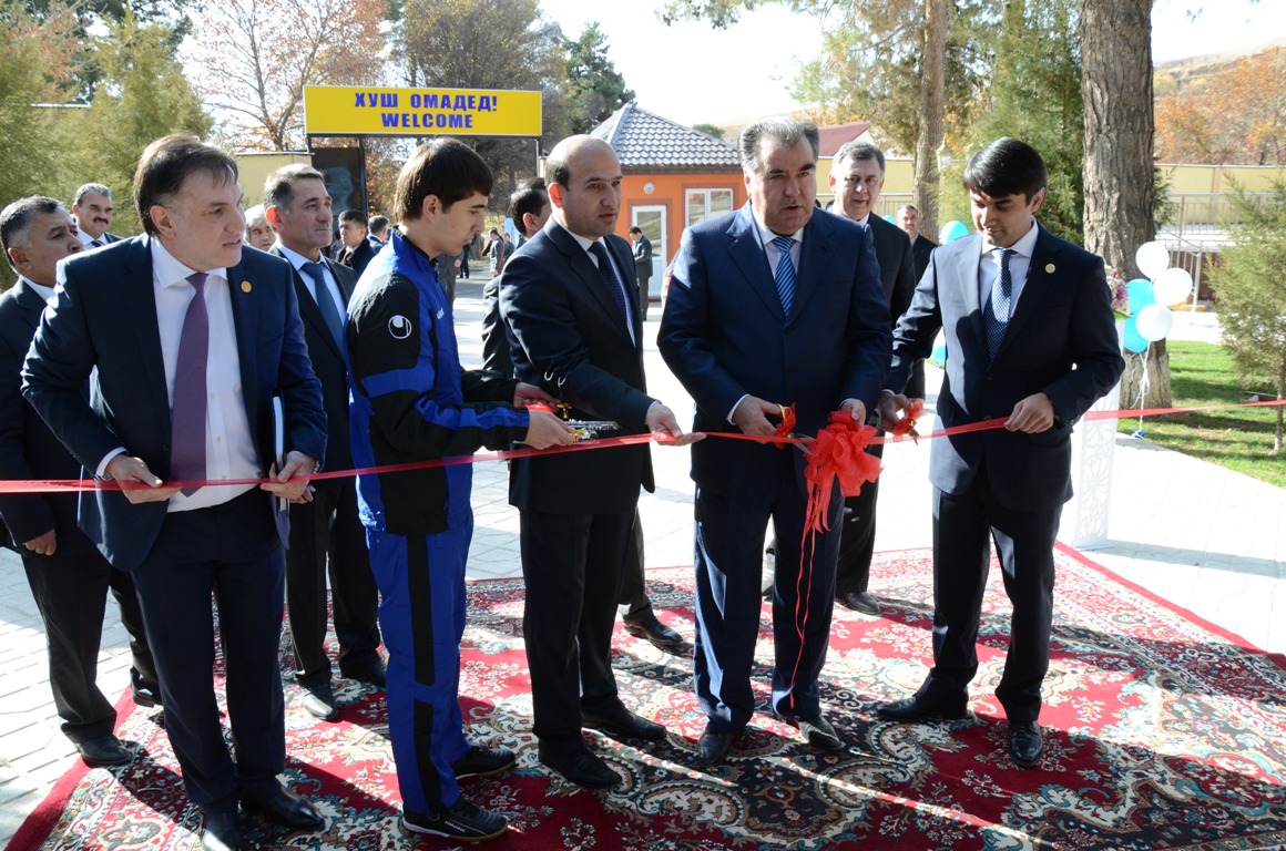 The President of Tajikistan, His Excellency Emomali Rahmon, cut the red ribbon, symbolizing the opening of the sports training complex, and wished success in nurturing football "stars."