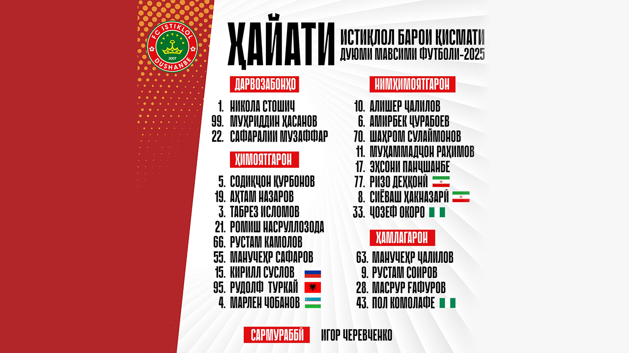 “ISTIKLOL” SQUAD FOR THE SECOND HALF OF THE 2025 FOOTBALL SEASON!