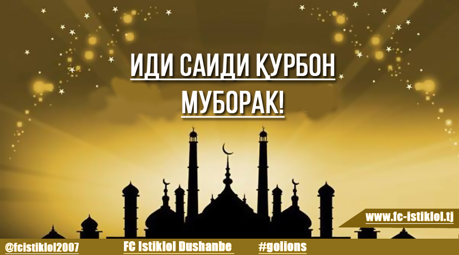Футбольный клуб «Истиклол» сердечно поздравляет вас с одним из великих праздников Ислама – Иди Курбон!