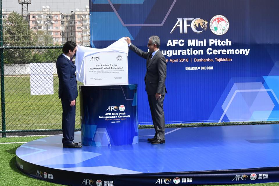 Президент АФК Шейх Салман бин Ибрагим Аль-Халифа и президент Федерации футбола Таджикистана Рустам Эмомали сегодня, 6 апреля, приняли участие в торжественном открытии четырех новых искусственных полей для мини-футбола, которые расположены на территории душанбинского стадиона «Автомобилист». Как сообщает пресс-служба ФФТ, данные футбольные площадки были построены на средства Азиатской футбольной Конфедерации в рамках реализации проекта инициатива президента АФК.
