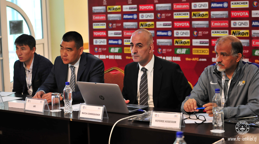 Сегодня днем в конференц-зале гостиницы ««Sanrise», состоялось традиционное предматчевое совещание с участием представителей Азиатской футбольной Конфедерации, футбольных клубов «Истиклол» и «Алай», организационного комитета и соответствующих ответственных подразделений. На собрании в преддверии завтрашнего матча были обсуждены ряд организационных вопросов, а также определены игровые цвета участвующих команд. Чемпион Таджикистана выступит в полностью в белой форме. В то время как хозяева будут играть в формах желто-черного цвета. По предварительным данным организаторы матча на игре ожидают приезд порядка 5 тысяч зрителей. Напомним, что встреча 4-го тура группового этапа Кубка АФК-2018 в квартете «D» между кыргызским «Алаем» и таджикским «Истиклолом» пройдет в среду, 25 апреля, на стадионе имени Ахматбека Суюмбаева в городе Оше и начнется в 13.00 по душанбинскому времени.