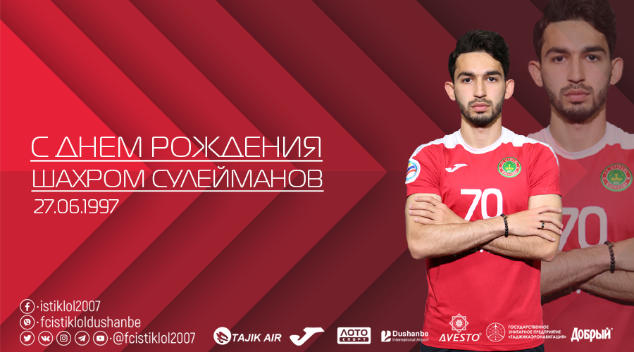 Футбольный клуб «Истиклол» поздравляет полузащитника Шахрома Сулаймонова с Днем рождения!