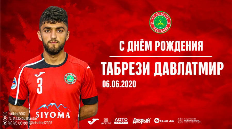 Сегодня, 6 июня, свой День рождения отмечает защитник душанбинского «Истиклола» Табрези Давлатмир.