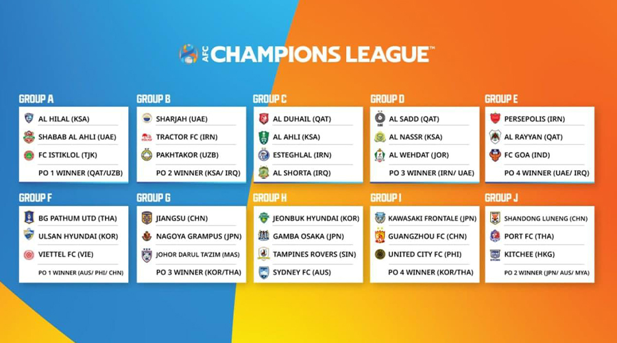 Группа «А»: «Аль-Хилал» (Саудовская Аравия), «Шабаб Аль-Ахли Дубай» (ОАЭ), «ИСТИКЛОЛ» (ТАДЖИКИСТАН), победитель пары плей-офф «Аль-Гарафа» (Катар) – АГМК (Узбекистан).