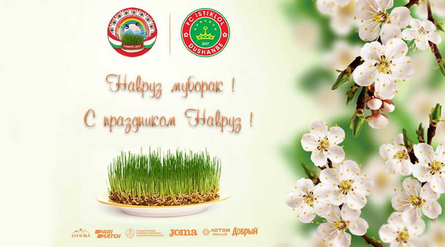 Душанбинский футбольный клуб «Истиклол» поздравляет всех вас с этим волшебным праздником. Желаем вашему дому мир и покой, достаток и изобилие, пусть ваша жизнь будет такой же сладкой и щедрой, как блюда на праздничном столе! Пусть Навруз, как щедрый гость, принесет в ваш дом самые драгоценные подарки! С праздником весны!