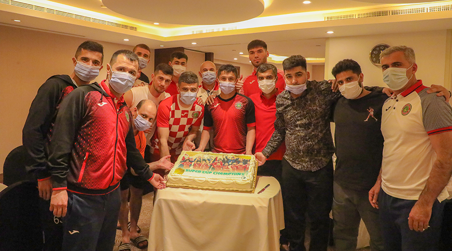 В честь победы в Суперкубке Таджикистана футболистам «Истиклола» подарили торт.