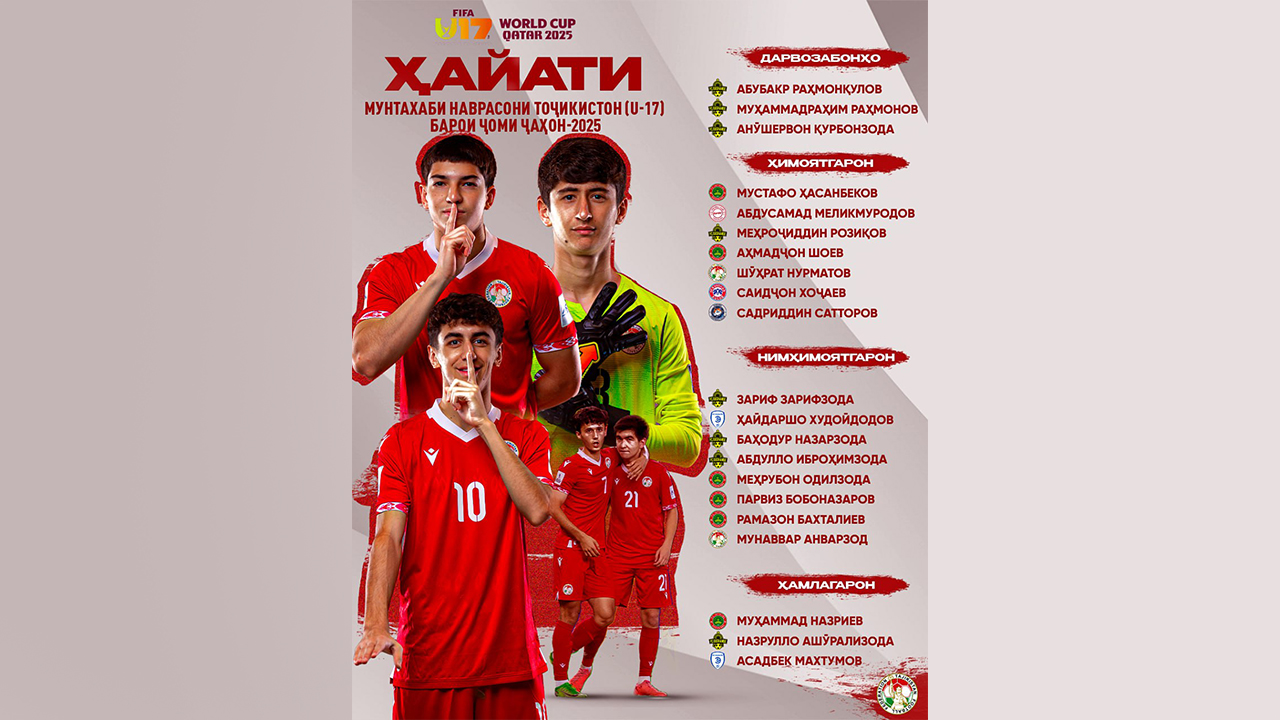 Стоит отметить, что на чемпионате мира-2025 в Катаре юношеская сборная Таджикистана (U-17) в группе «I» будет соревноваться с командами Чехии (5 ноября), США (8 ноября) и Буркина-Фасо (11 ноября).