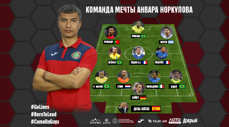 Бывший полузащитник «Истиклола» а ныне тренер команды Анвар Норкулов назвал свою символическую сборную лучших игроков мира.